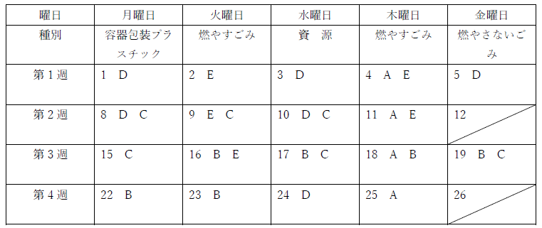 E 燃やすごみの日だけ担当したい。Dと組むことができない。